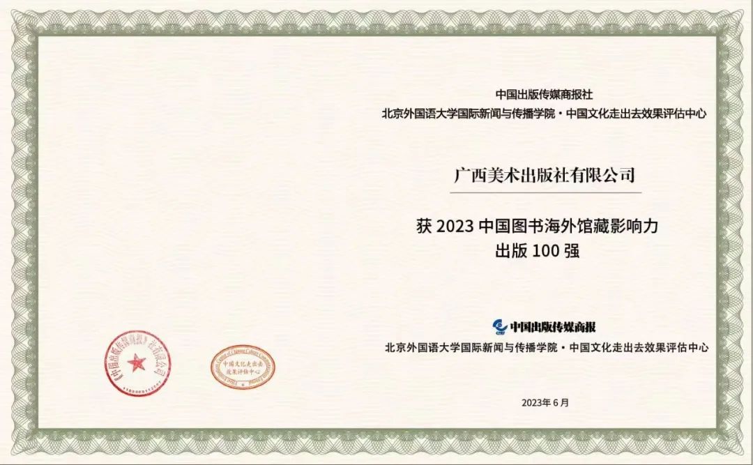 喜訊 | 廣西美術(shù)出版社入圍2023年中國(guó)圖書(shū)海外館藏影響力百?gòu)?qiáng)