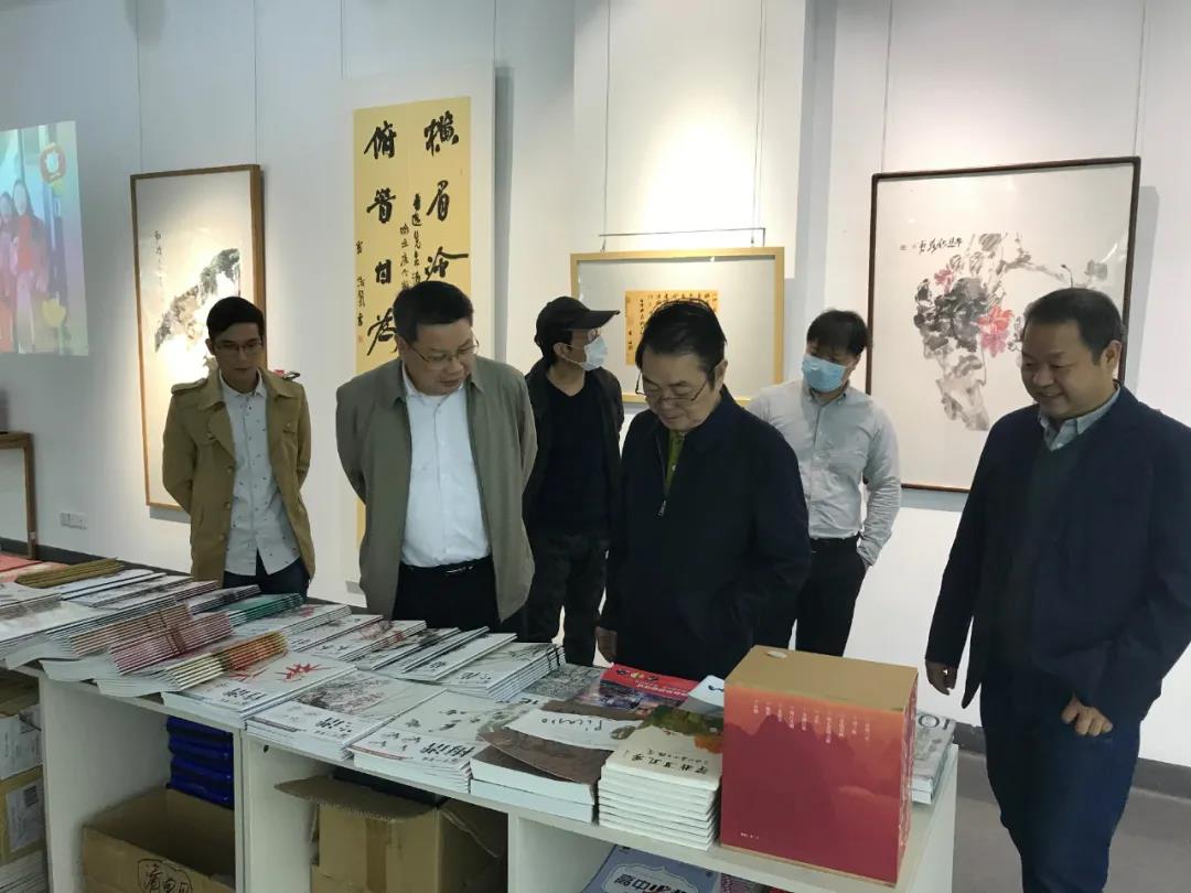 ▲廣西出版?zhèn)髅郊瘓F總編輯張藝兵(左二),廣西政協(xié)原副主席、中國美協(xié)原副主席黃格勝(右三),廣西美術(shù)出版社社長陳明(右一)一同參觀展覽